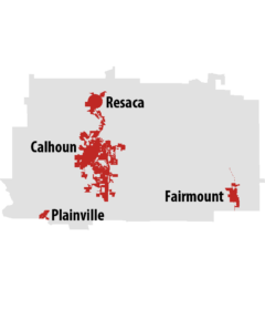 Incorporated Cities: Calhoun, Fairmont, Resaca and Plainville