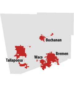 Incorporated Cities: Bremen, Buchanan, Tallapoosa and Waco